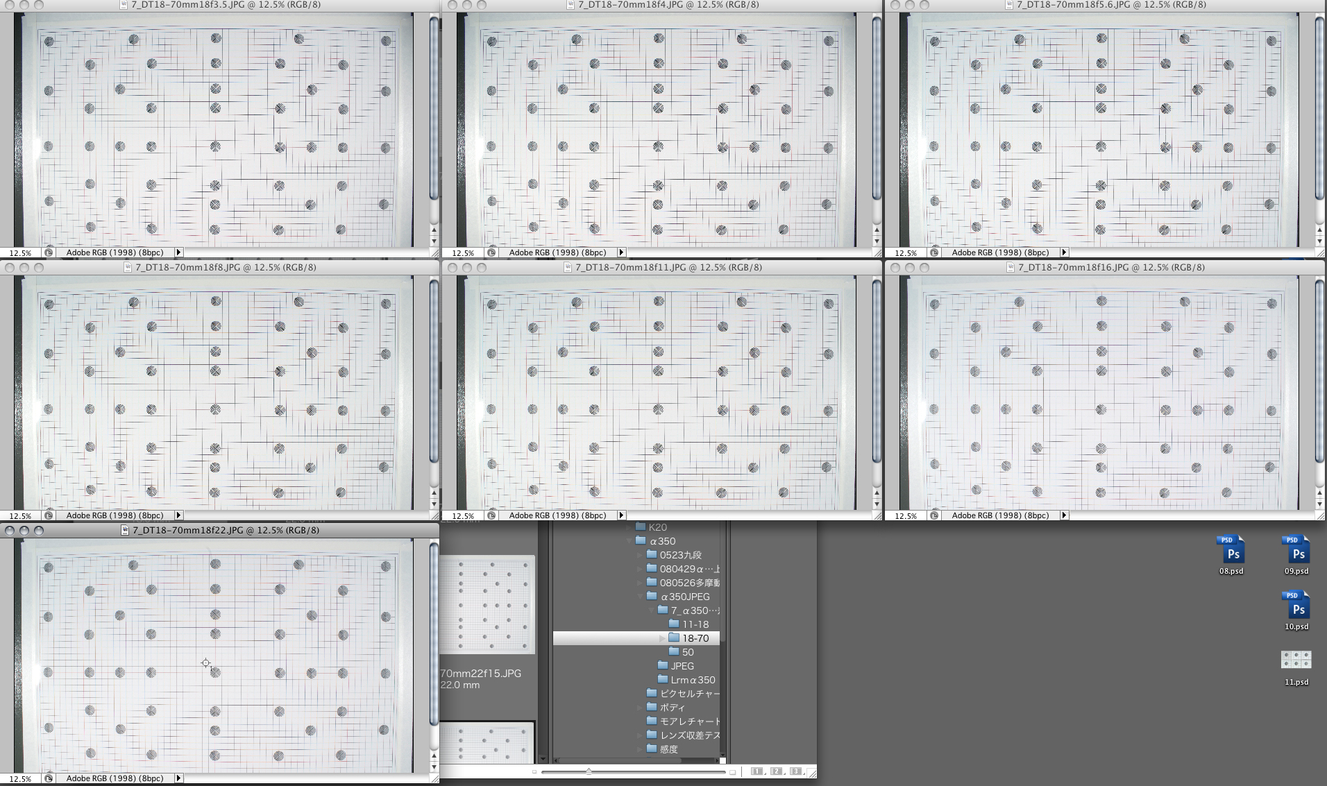 11m側の各絞り値。さすがにこれだけ超広角だと真正面に据えるのが難しい。少し偏っているので多めにみてください。凄く難しいんです。