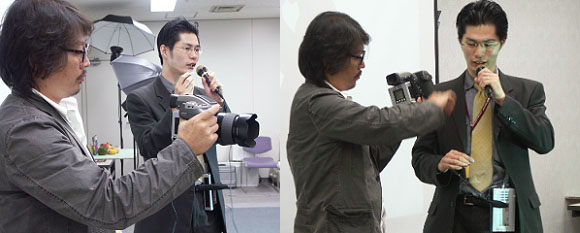 その5356×4056pixlの巨大な画像の転送スピードは早く、通常の撮影であれば、文句のないスピードです。また、カメラ下にアダプターのように取り付けるモバイルに的したポータブルセットの充実もかなりのもので、定評のあるアプリケーションも健在です。撮影セットを手直しする早川塾長のカットもご一緒に