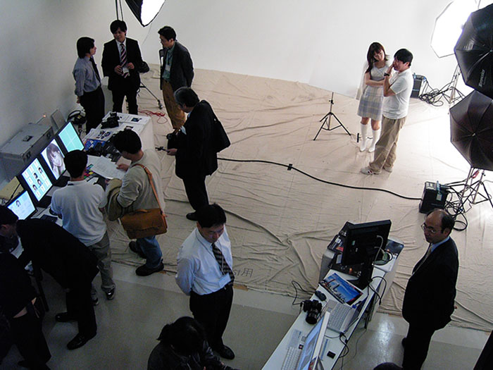 もちろん手ぶれ補正装置をボディに内蔵したα7 DIGITAL とハイエンドデジタルカメラの人気商品であるフェイズワンのダブル展示。スタジオ奥にモデル撮影 のセットを組んでのデモンストレーションでした。フィルムとの撮影比較や、受光素子の手ぶれ補正駆動システムなどが注目を集めていました。