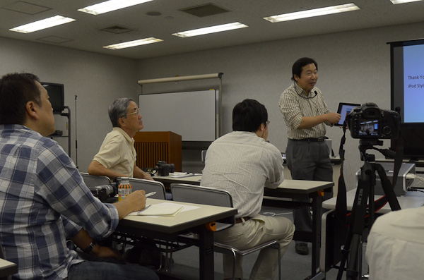 電 子書籍を楽しみに来ている方々が多いのが特徴的でした。InDesignはじめ多くのDTPアプリケーションの解説、セミナー講師などで有名な影山 史枝 さんが参加していたのにびっくりです。電子辞書に関してはすでにエキスパートですが、最近旦那様からカメラをいただいて、デジタルカメラに興味を持ち始め た、とのことでした。